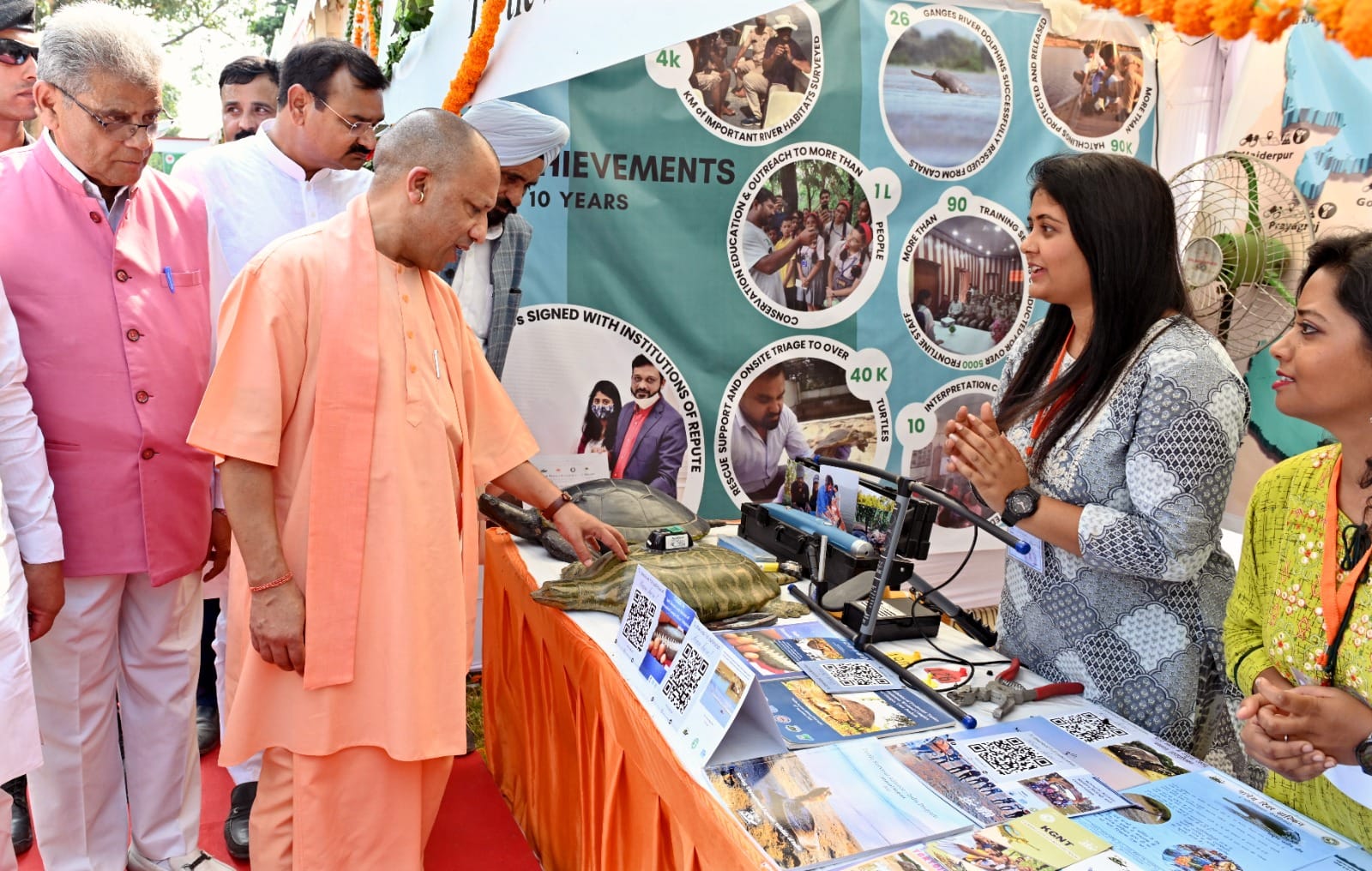 मुख्यमंत्री एक-एक स्टॉल पर गए और समूहों के द्वारा तैयार किए गए उत्पाद के बारे में जानकारी ली। मंच से मुख्यमंत्री ने कहा कि पीलीभीत टाइगर रिजर्व में वर्ष 2018 में 25 बाघ मौजूद थे। डबल इंजन की सरकार के प्रयास से पीटीआर में 2022 में बाघों की संख्या दोगुनी हो गई। अब यहां पर 71 बाघ हैं। इसके लिए वन अधिकारी बधाई के पात्र हैं।